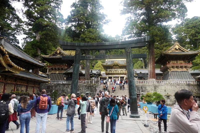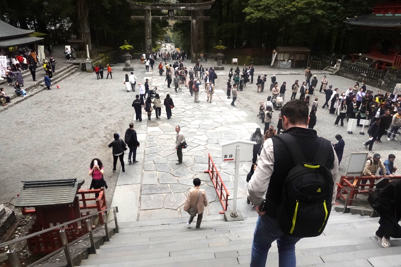 この写真は、陽明門へ行く階段を登り切ったところから境内を見おろしたところ。平日でこの調子ですから、休日となるとすごいでしょうね。