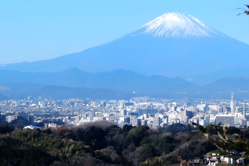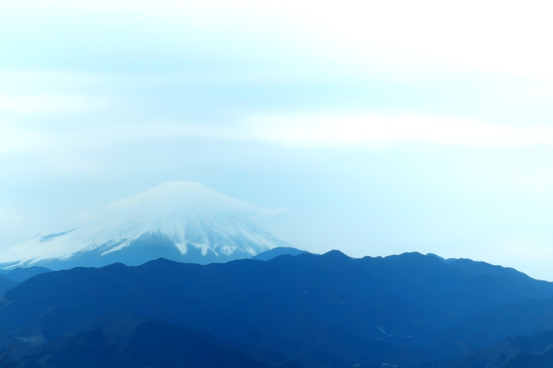 左は、鎌倉建長寺の裏、500段の階段を登ったところにある展望台からみた富士山。右は、小仏城山の茶屋から見た富士山。