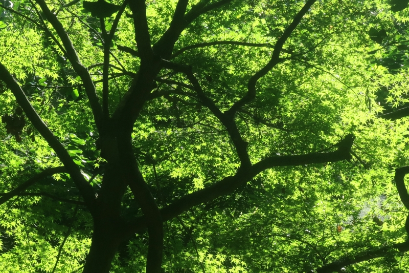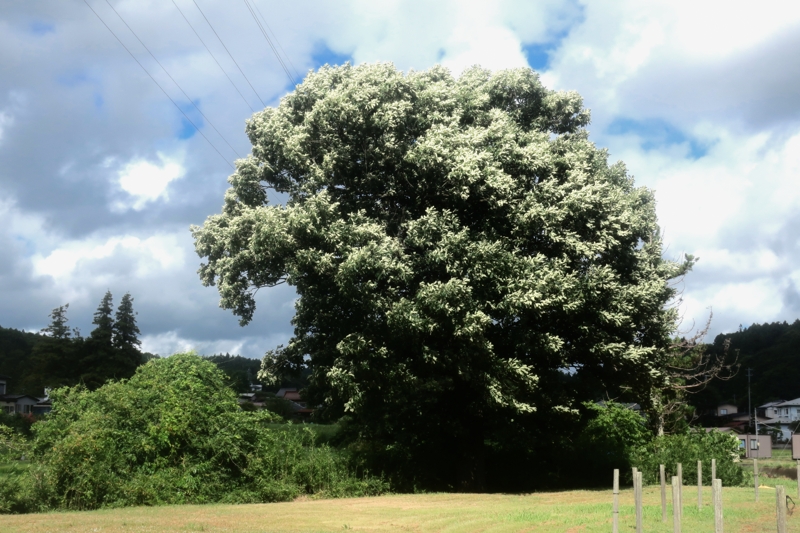 右の写真 柳之御所遺跡の樹木。ここは、藤原家の「内裏」で、中尊寺の南東に位置し、柳之御所から北西方山上の金色堂を望むように造営された。