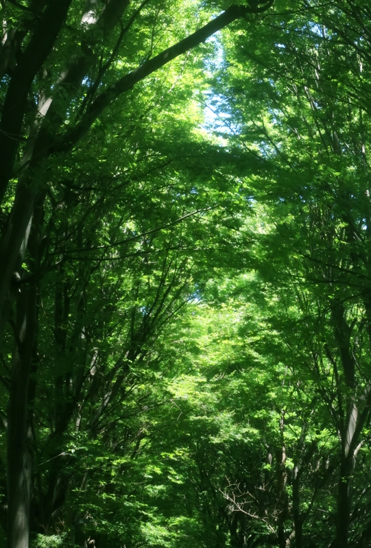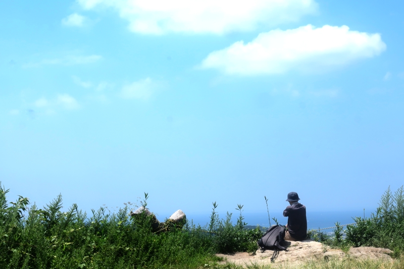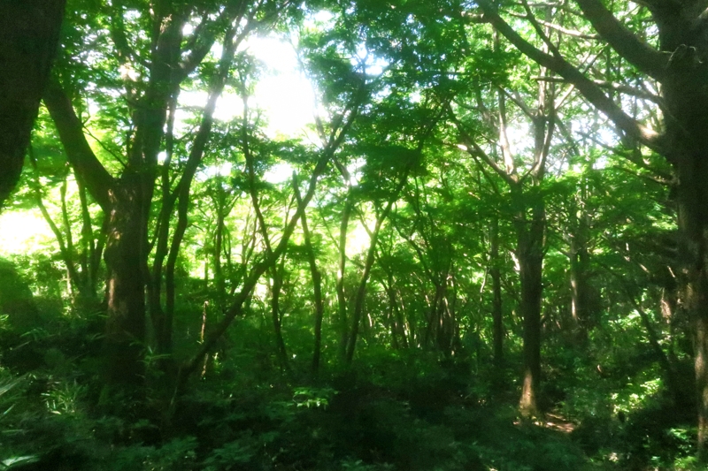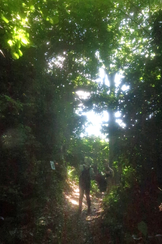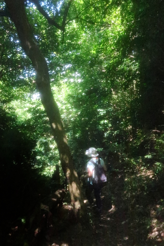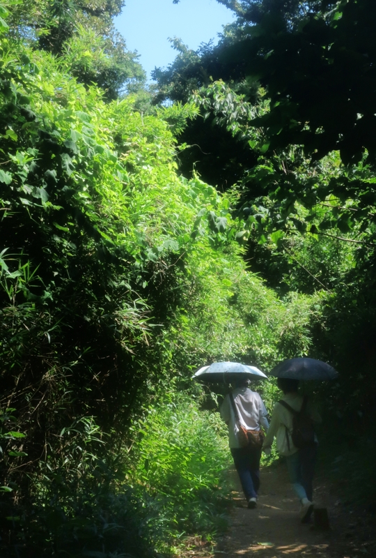 猛暑の中の鎌倉ハイキング。写真中央、鎌倉アルプスの「山頂」(151メートル)