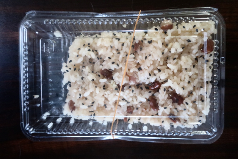 下の写真は、金曜日にいつも購入する赤飯。300円。