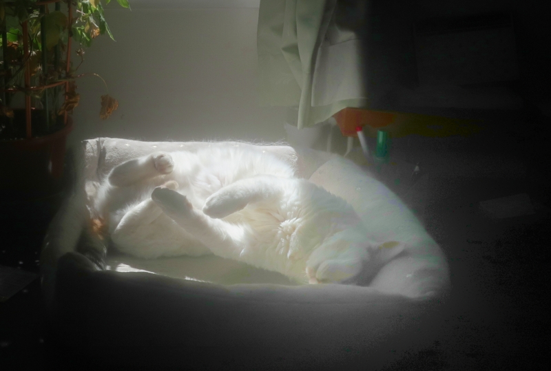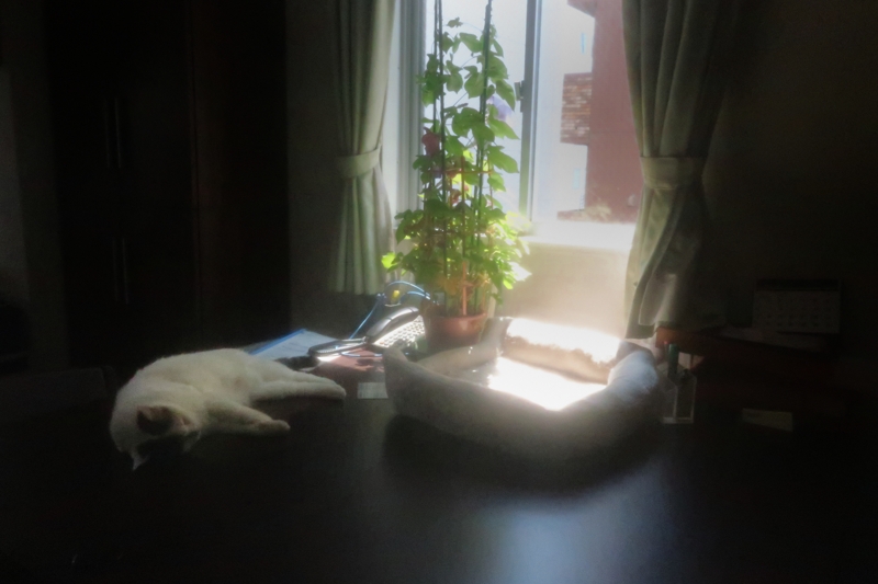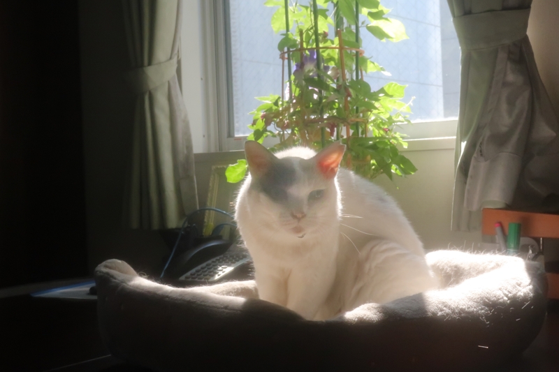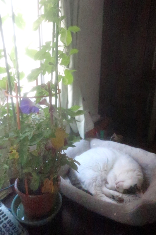それでも、ハナちゃん、この夏は、ずっと朝顔の側で寝ています。