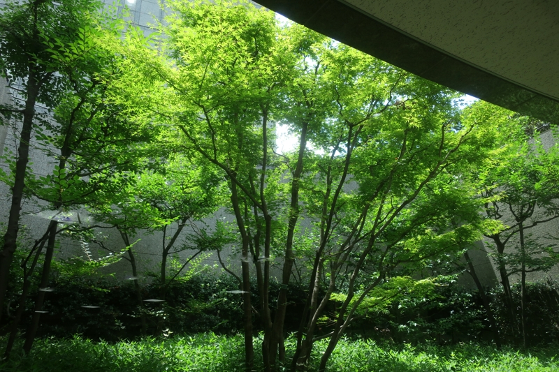 下の写真は、家裁の地下食堂の庭。前は、混んでいたのですが、いまは、ガラガラ。