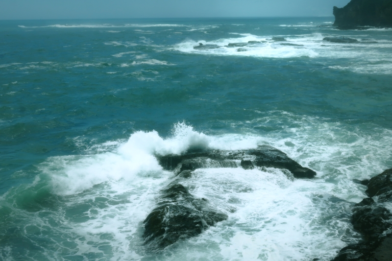 海のなかに塔がありますが、周囲は、外房ということもあり、結構荒波でした