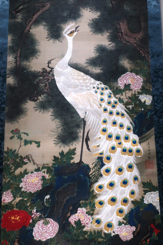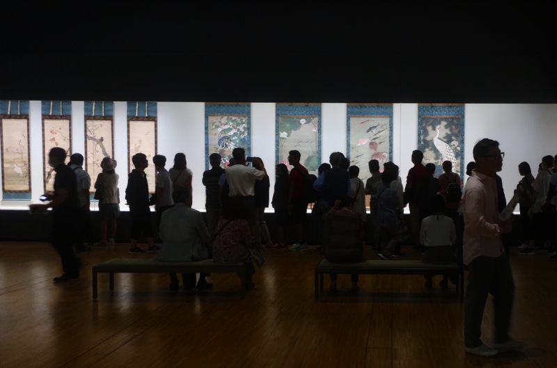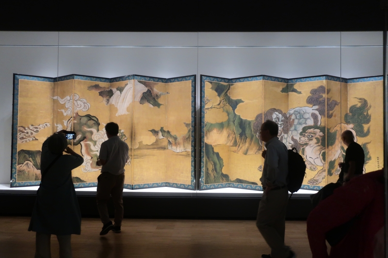 下の写真、左、中央、ご存じ伊藤若冲動植綵絵右は狩野永徳唐獅子図屏風。いずれも国宝、撮影自由!(信じられない大盤振る舞い)