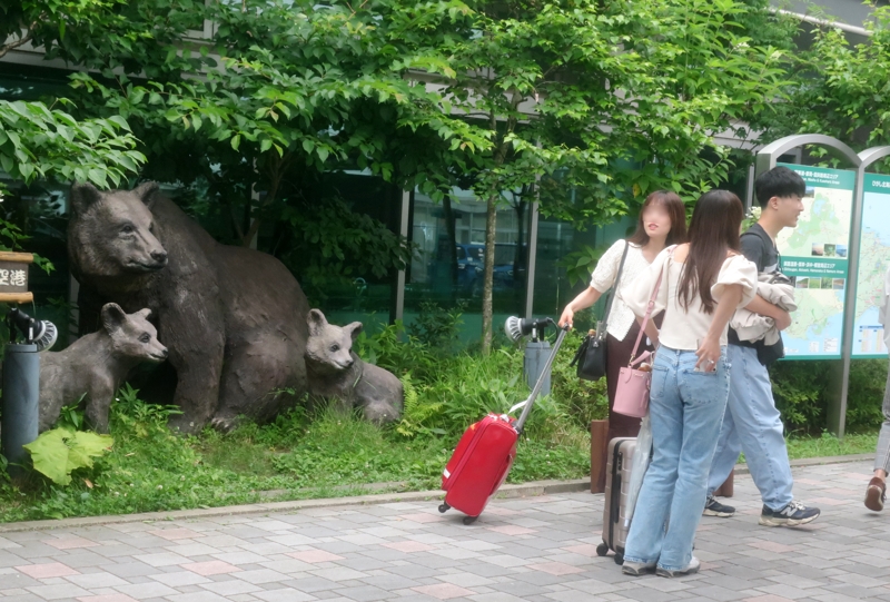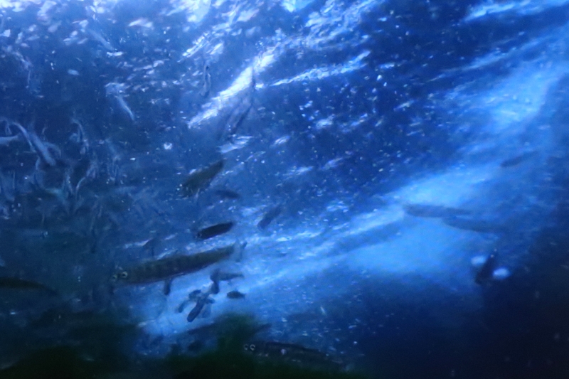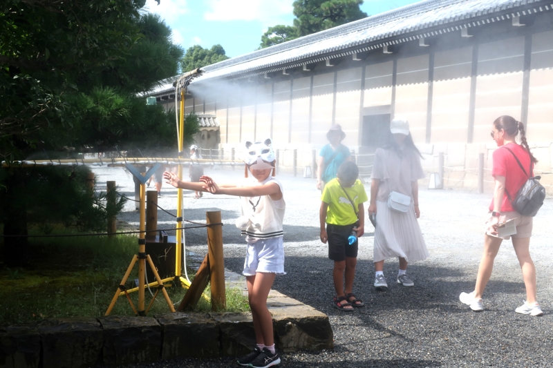 暑さ対策もいろいろ工夫してました。写真、右、一角に風鈴がたくさんつるされ、涼しげな音を立てていました。写真左、ミストが吹き出る場所がありました。