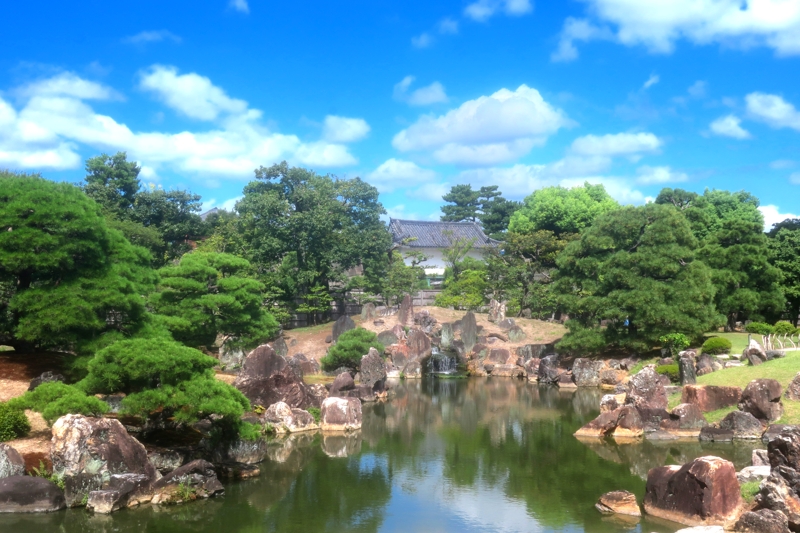 残念ながら、内部は撮影禁止。二条城の庭園などを写しました。めちゃくちゃ暑かったです。