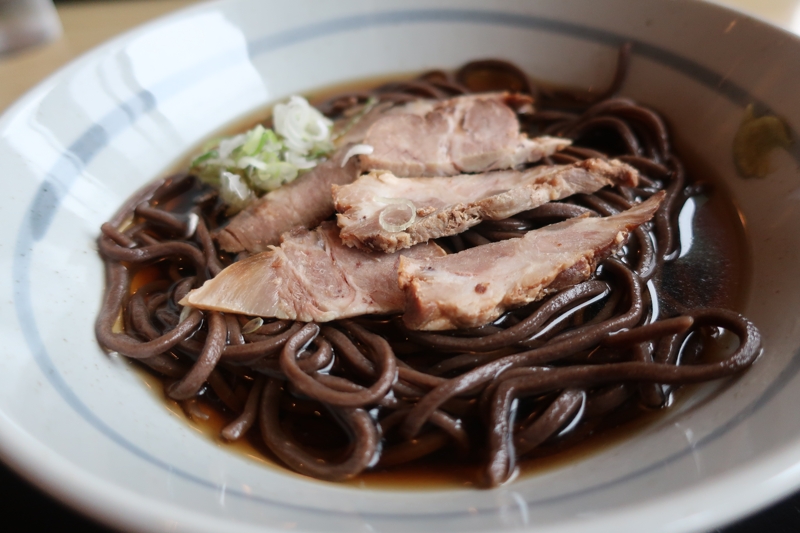 蕎麦が真っ黒です。蕎麦粉を殻ごと挽いているので、こんな風に真っ黒になるんだそうです。この黒さが話題になり、わざわざ車で、村民が800名と実は北海道で一番人口が少ない村に、皆さんが来るのです。