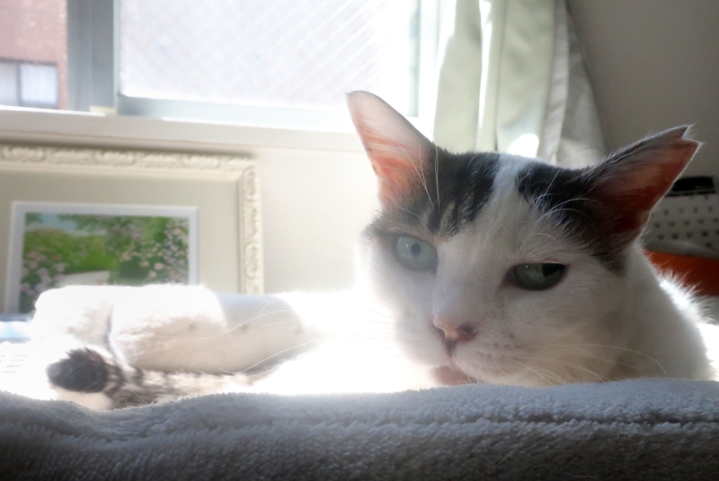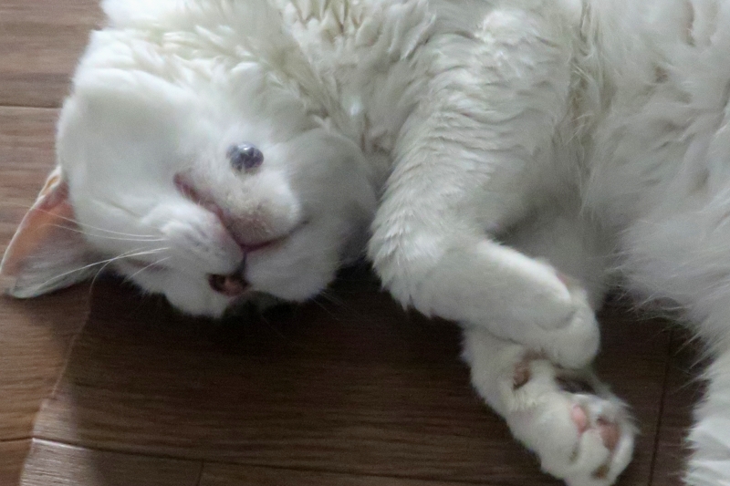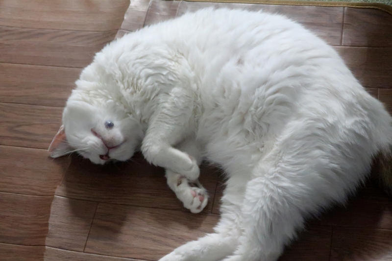 しかも、ホットカーペットの上が好きで、暑い日々が続くのに、ほとんどホットカーペットの上で寝ています。たまに、ホットカーペットから移動して寝ますが、暫くすると、またホットカーペットに戻って寝ます。暑くないのか?のぼせないのか?温泉気分なのか?