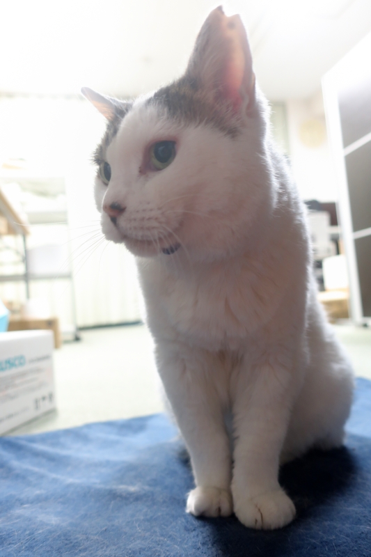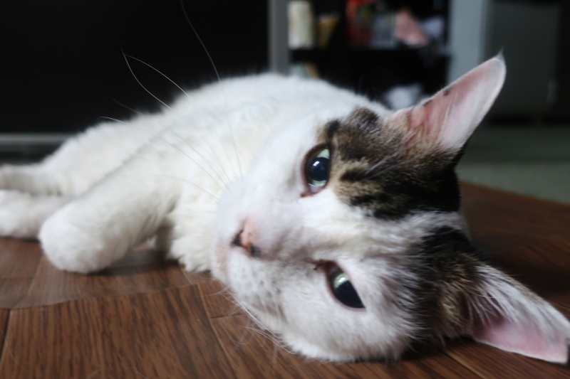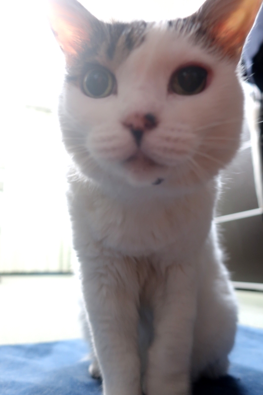 薬のせいか、ほぼ一日寝ているハナちゃん。たまに起きて水を飲んだりご飯食べたり。そのあと、こんな感じできょとんとしています。
