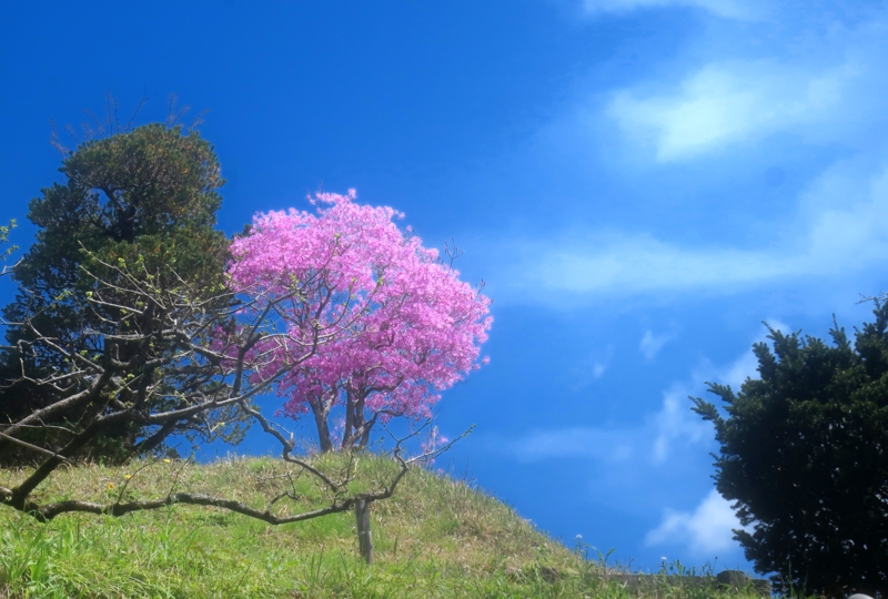 おそらく、種がとんできて、かってに咲いたものだろう、ということです。