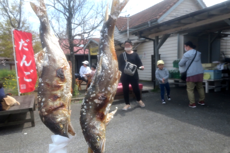 鮎の塩焼き。養老渓谷駅で。小さくなり、値段だけは大幅アップ。