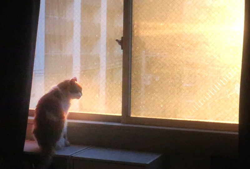 ジロちゃんの縄張り意識は、相変わらず強烈で、寝てるとき以外は、5階の窓から、縄張りに近づく者はいないか、絶えず外を監視しています。ハナちゃんは、窓の外には興味なし。ただ、発作止めの薬のせいで、いつも寝ています。