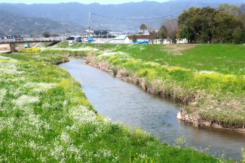 〔空 青と白)・ ( 川 緑と黄色)