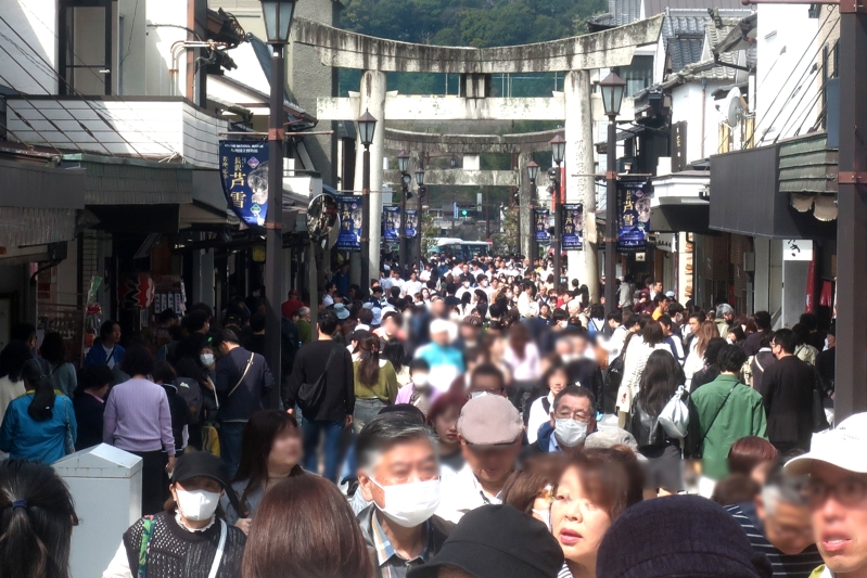 左 大宰府参道。ものすごい人です。