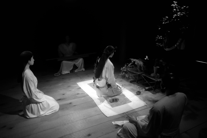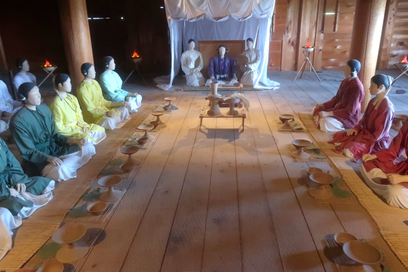 この集落は、鬼道を行う巫女(写真下左)が権威の象徴として君臨し、その下に権力者として王が君臨(写真右)しました。トップは神がかった存在で権威を持ち、権力は実力者が行使するというのは、いまの日本と同じ。こういう政治体制は、日本人に会うのでしょうか。